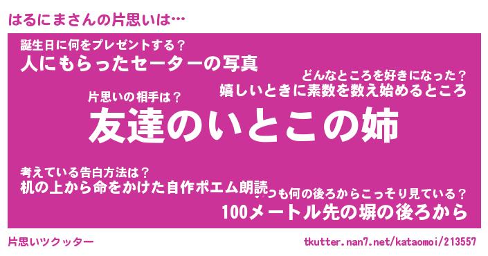 | 意味不明あだ名 | 『ペロリンはるにま』『永久保存はるにま』 |