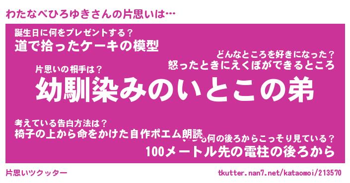 | ヘコむあだ名 | 『わたにゅー』『豆乳』『わたお』 |