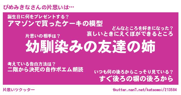 | 女子向けラノベタイトル風あだ名 | 『(仮)ぴめみきなのやんごとなき事情』 |