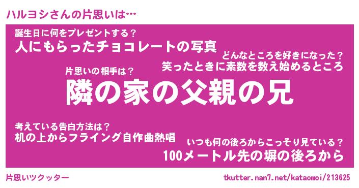 | 胡散臭い通販商品みたいなあだ名 | 『モテモテ間違いなしブレスレット…その名も「ハルヨシ」』 |