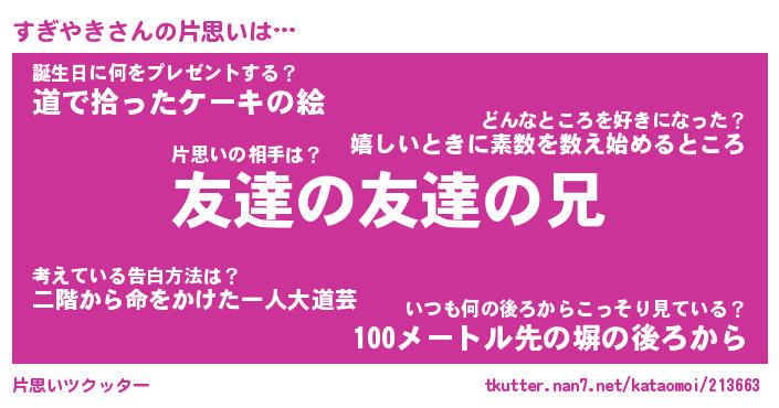 | ヘコむあだ名 | 『すぎっふぃ~』『牛乳』『すぎを』 |