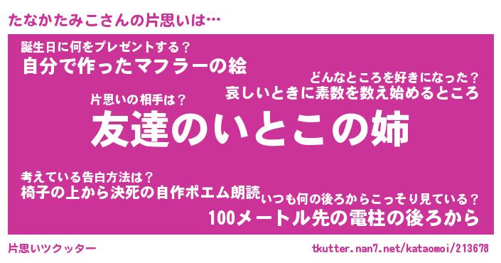 | 男性向けラノベタイトル風あだ名 | 『タナカタミコアートオンライン』 |