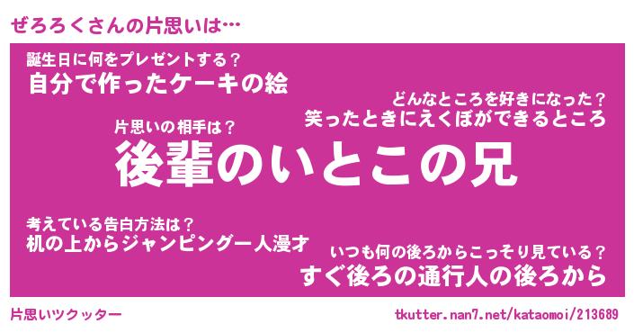 | ヘコむあだ名 | 『ぜろもー』『つくし』『ぜろっ子』 |
