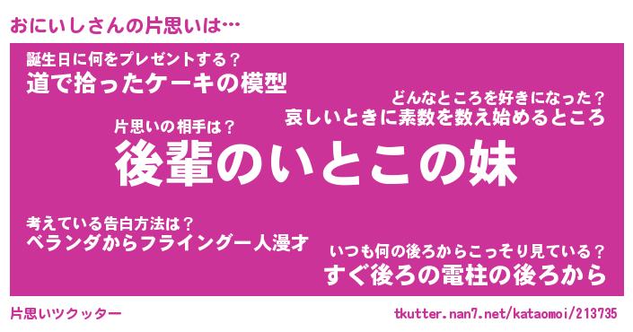 | 意味不明あだ名 | 『ペロリンおにいし』『永久保存おにいし』 |