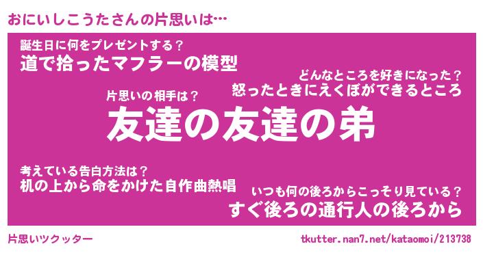 | 胡散臭い通販商品みたいなあだ名 | 『億万長者になれる霊験あらたかなお札…その名も「おにいしこうた」』 |