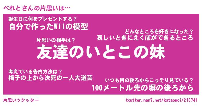 | 意味不明あだ名 | 『ペロリンべれと』『べれとフォーエバー』 |