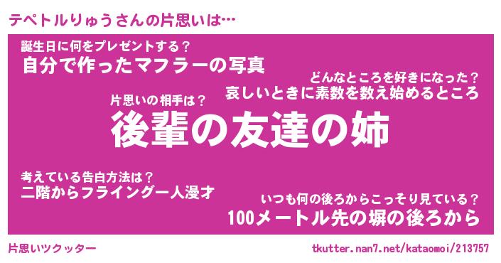 | ツイッター | テペトルりゅうさんのツイッターID『dendenmushi_nyan』 |