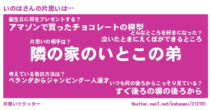| ヘコむあだ名 | 『いのもー』『なまこ酢』『いのっぺ』 |