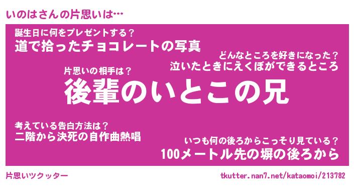 | ヘコむあだ名 | 『いのもー』『豆乳』『いの太郎』 |