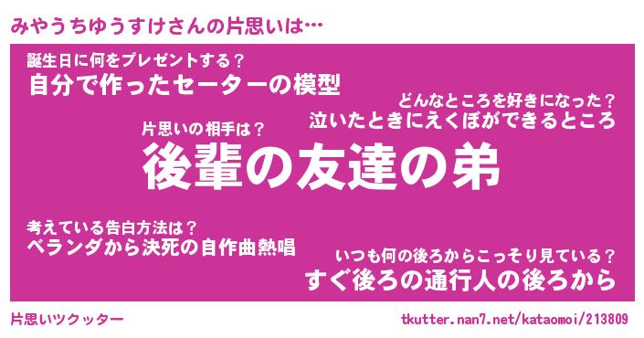 | 伝説のあだ名 | 『封印されしスナイパーみやうちゆうすけ』 |