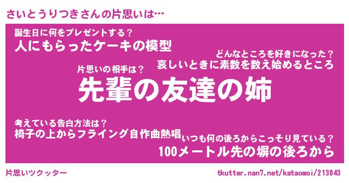 | 胡散臭い通販商品みたいなあだ名 | 『モテモテ間違いなし霊験あらたかなお札…その名も「さいとうりつき」』 |