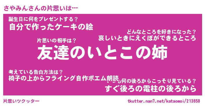 | ヘコむあだ名 | 『さやにゅー』『つくし』 |