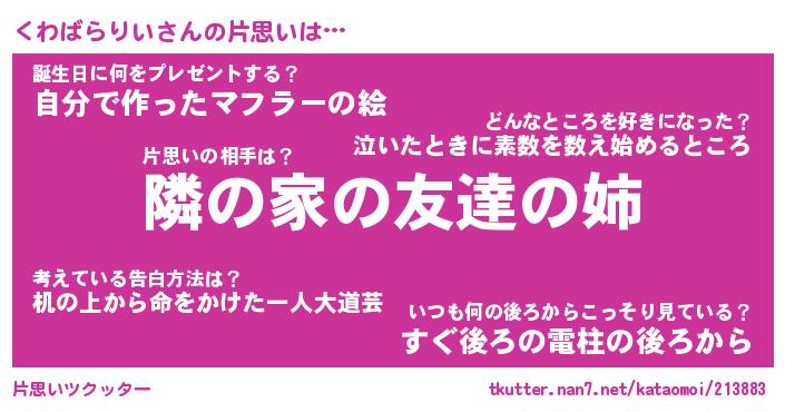 | ヘコむあだ名 | 『くわっふぃ~』『牛乳』『くわお』 |