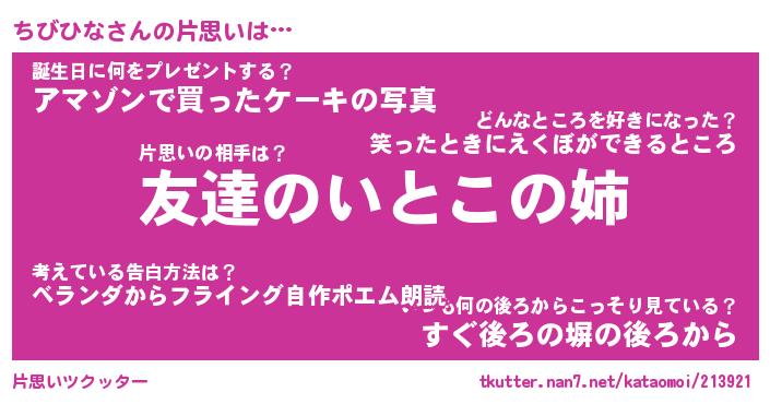 | ヘコむあだ名 | 『ちびにゅー』『なまこ酢』『ちびお』 |