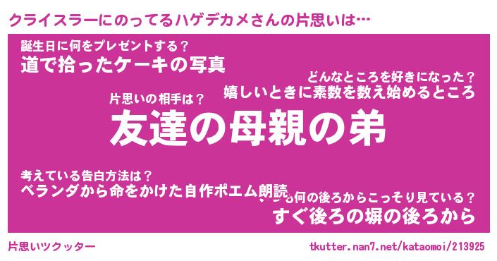 | 胡散臭い通販商品みたいなあだ名 | 『億万長者になれるブレスレット…その名も「クライスラーにのってるハゲデカメ」』 |