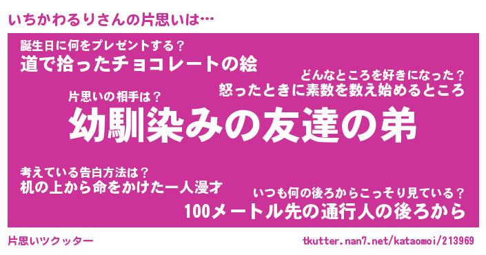 | ヒーロー風カッコイイあだ名 | 『スーパーイチカワルリ』『炎刃騎士イチ』 |