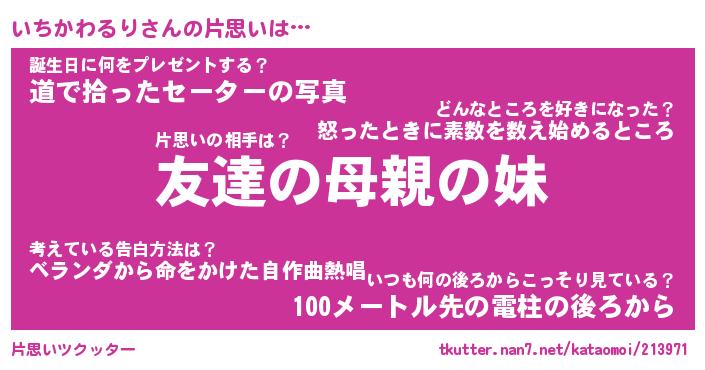 | ヒーロー風カッコイイあだ名 | 『スーパーイチカワルリ』『暗黒騎士イチ』 |