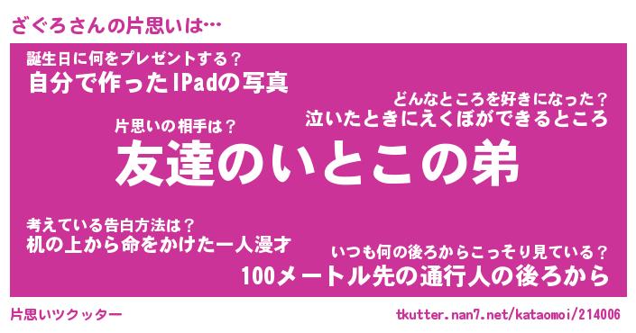 | ヘコむあだ名 | 『ざぐもー』『牛乳』『ざぐを』 |