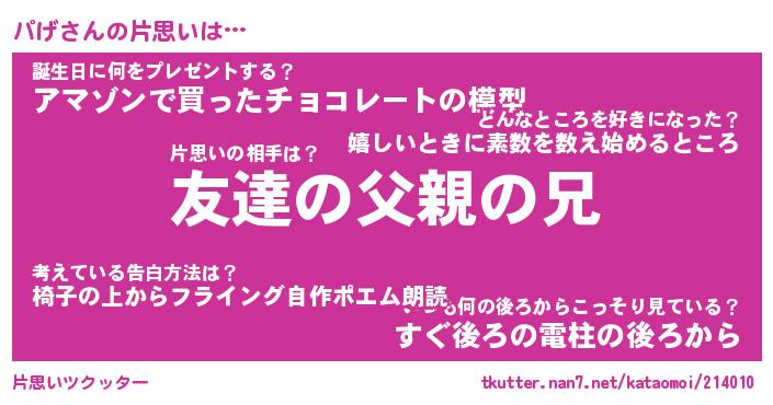| ファンタジー風あだ名 | 『パゲフェル』『エターナルパゲー』 |