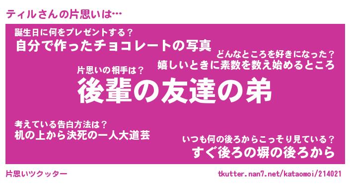 | 意味不明あだ名 | 『ペロリンティル』『ティルフォーエバー』 |