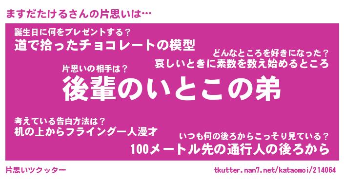 | 女子向けラノベタイトル風あだ名 | 『誰かこのますだたけるを説明してください! ~契約から始まるウェディング~』 |