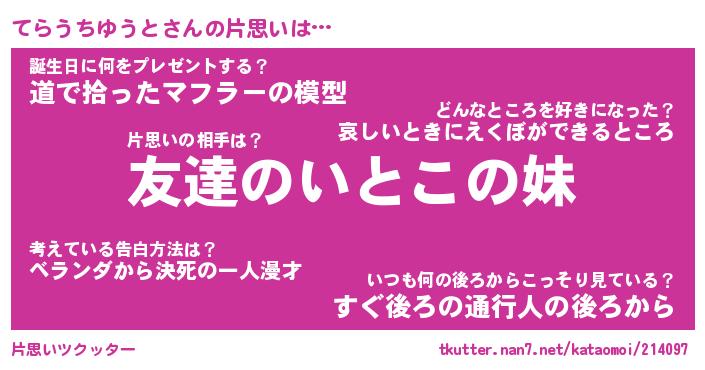 | 胡散臭い通販商品みたいなあだ名 | 『億万長者になれる霊験あらたかなお札…その名も「てらうちゆうと」』 |