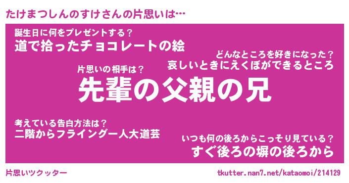 | 胡散臭い通販商品みたいなあだ名 | 『モテモテ間違いなし水晶球…その名も「たけまつしんのすけ」』 |