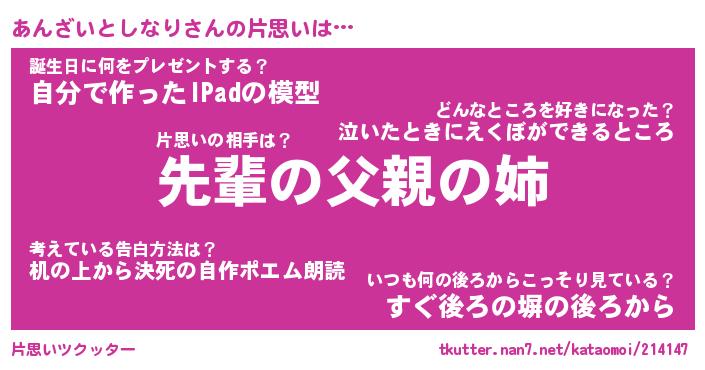 | 胡散臭い通販商品みたいなあだ名 | 『モテモテ間違いなし水晶球…その名も「あんざいとしなり」』 |