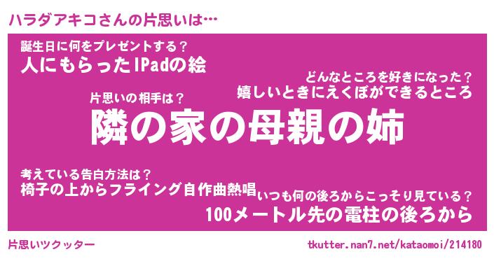 | 意味不明あだ名 | 『ペロリンハラダアキコ』 |