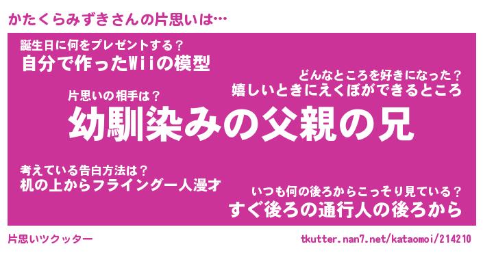 | ヘコむあだ名 | 『かたにゅー』『つくし』 |