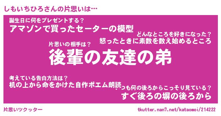 | 意味不明あだ名 | 『ペロリンしもいちひろ』 |