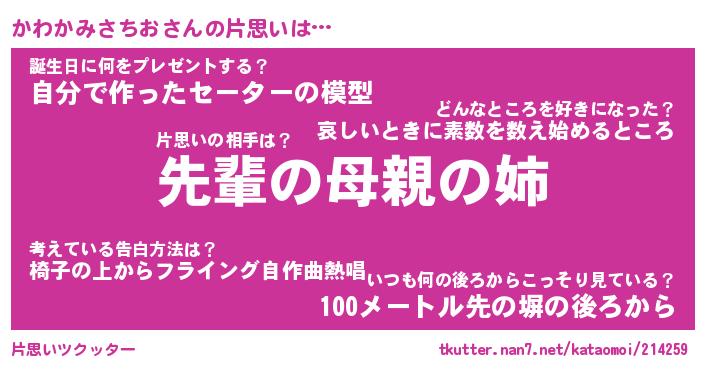 | 意味不明あだ名 | 『ペロリンかわかみさちお』 |
