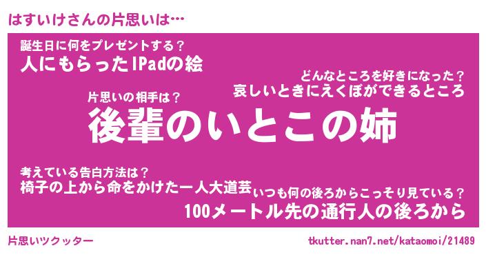 | ヘコむあだ名 | 『はすにゅー』『なまこ酢』 |