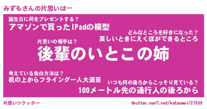 | 胡散臭い通販商品みたいなあだ名 | 『モテモテ間違いなし霊験あらたかなお札…その名も「みずも」』 |