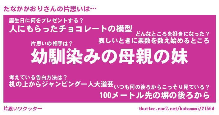 | 男性向けラノベタイトル風あだ名 | 『たなかかおりの憂鬱』 |