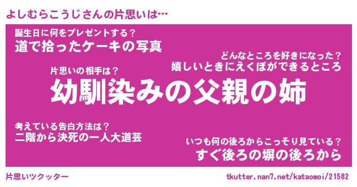 | 男性向けラノベタイトル風あだ名 | 『よしむらこうじの憂鬱』 |