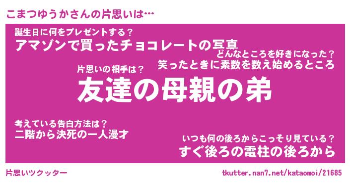 | ヒーロー風カッコイイあだ名 | 『スーパーコマツユウカ』『幻影騎士コマ』 |