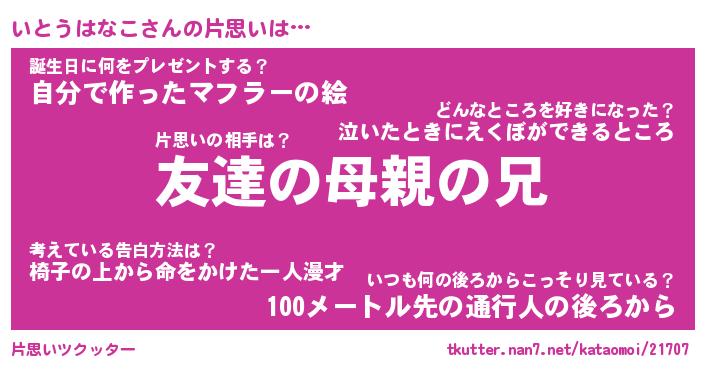 | ヘコむあだ名 | 『いとにー』『なまこ酢』『いと太郎』 |