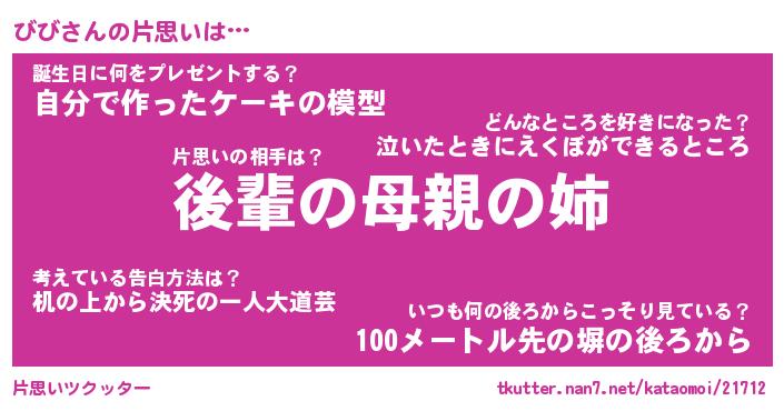 | ヘコむあだ名 | 『びびにー』『豆乳』『びび太郎』 |