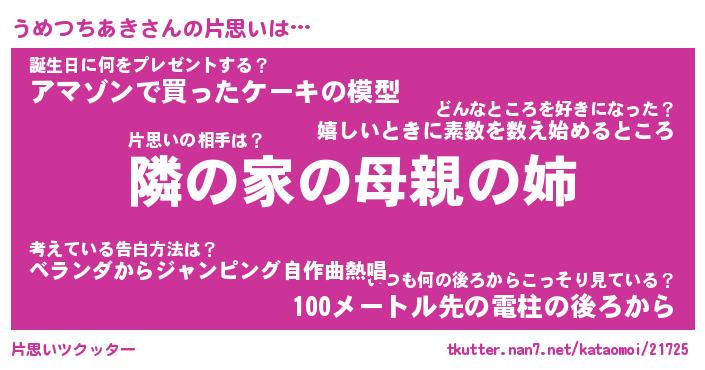 | 胡散臭い通販商品みたいなあだ名 | 『必ず成功するブレスレット…その名も「うめつちあき」』 |