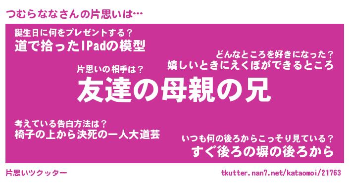 | 胡散臭い通販商品みたいなあだ名 | 『億万長者になれるブレスレット…その名も「つむらなな」』 |