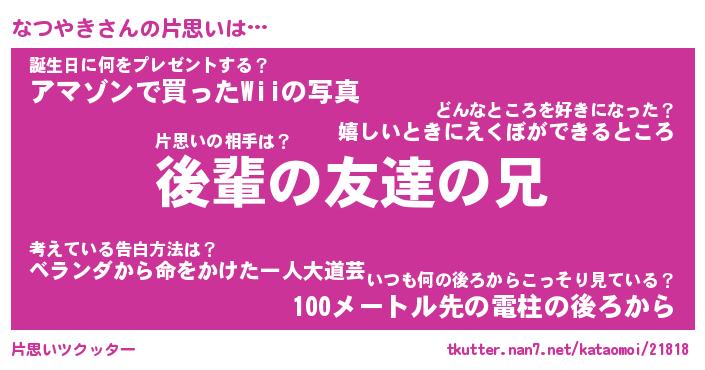 | ヘコむあだ名 | 『なつっふぃ~』『なまこ酢』 |