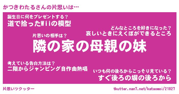 | 恥ずかしいあだ名 | 『プリティーかつきわたる』『かつっちょ』 |