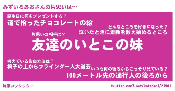 | 胡散臭い通販商品みたいなあだ名 | 『億万長者になれる霊験あらたかなお札…その名も「みずいろあお」』 |