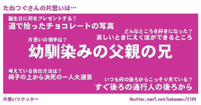 | 男性向けラノベタイトル風あだ名 | 『たねつぐの憂鬱』 |