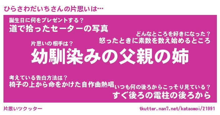 | 男性向けラノベタイトル風あだ名 | 『ひらさわだいちの憂鬱』 |
