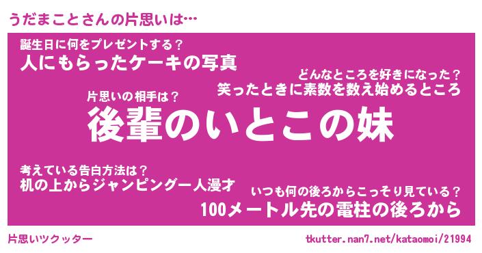 | 胡散臭い通販商品みたいなあだ名 | 『億万長者になれる水晶球…その名も「うだまこと」』 |