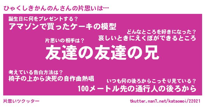 | 男性向けラノベタイトル風あだ名 | 『ヒャクシキカンノンアートオンライン』 |
