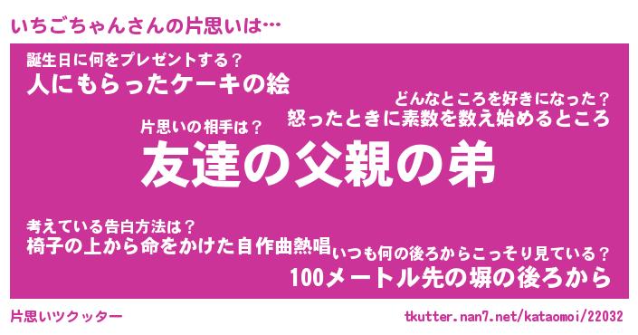 | 胡散臭い通販商品みたいなあだ名 | 『億万長者になれる水晶球…その名も「いちごちゃん」』 |