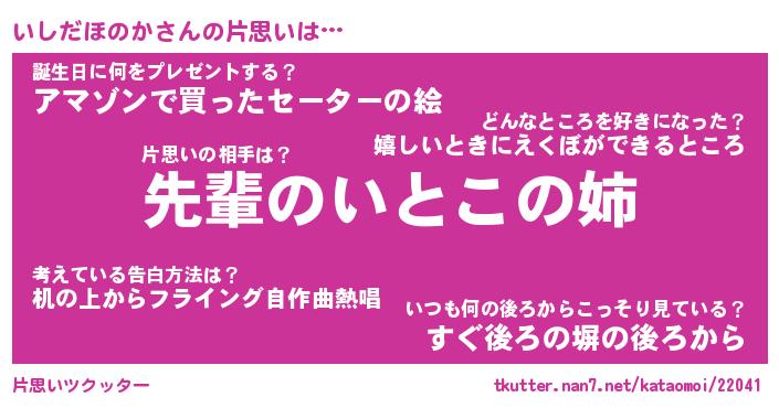 | 胡散臭い通販商品みたいなあだ名 | 『モテモテ間違いなし水晶球…その名も「いしだほのか」』 |